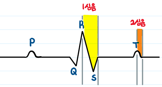 - QRS파 : 심실 근육의 탈분극을 의미한다. 심실 수축의 시작을 의미한다. 부정맥인 경우 QRS파가 안보이기도 한다.
