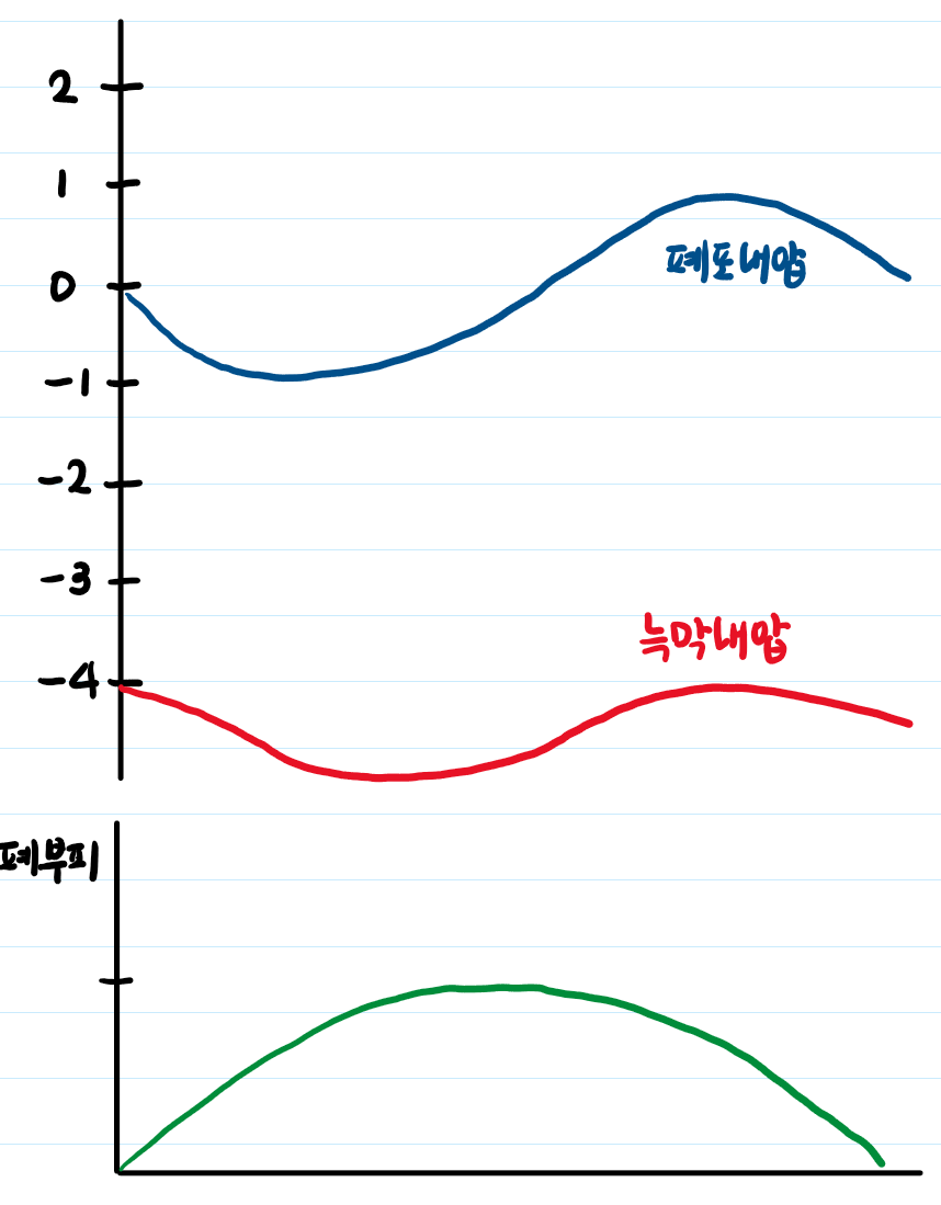 - 폐포 내압은 폐의 용적 변화로 변화된다.